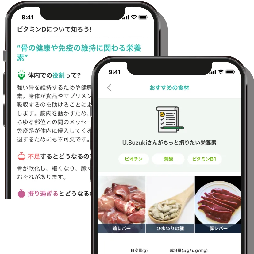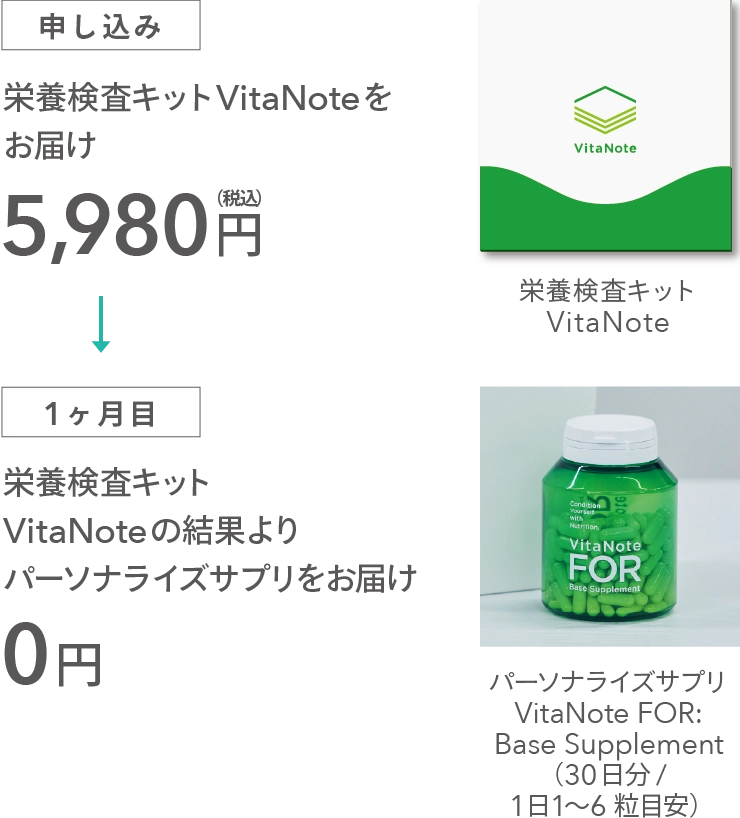 2種類の栄養検査の結果をもとに、一人ひとり栄養素を配合してお届けします。