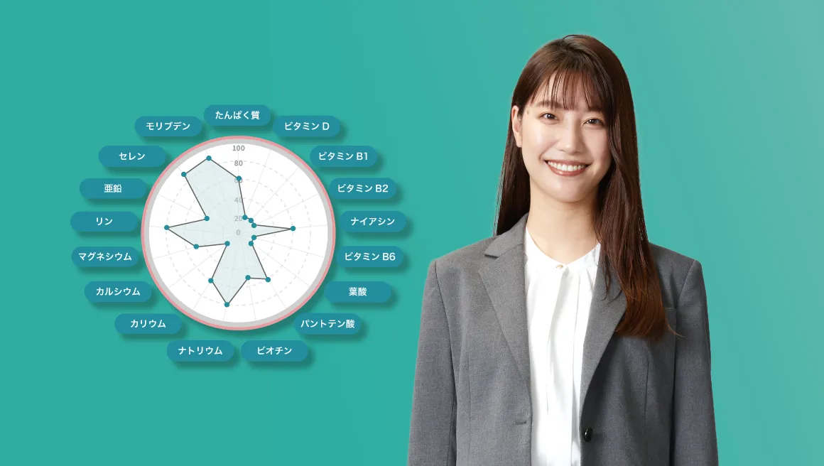 レーダーチャートで、ひと目で栄養状態を確認できる